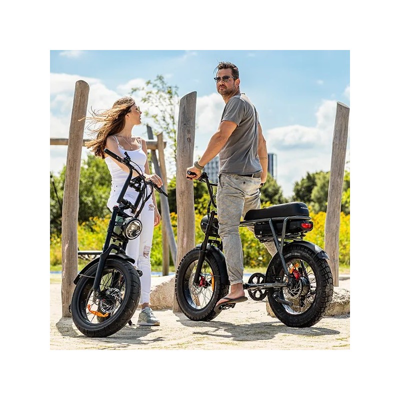La Pinscher W1 Series es mucho más que una bicicleta eléctrica: es una fatbike con un diseño cuidado y un look moderno, lista para todas tus aventuras. Con sus neumáticos anchos de 20x4 pulgadas, su silueta compacta y acabados robustos, atrae todas las miradas y se impone como un compañero estiloso tanto en la ciudad como en los caminos.