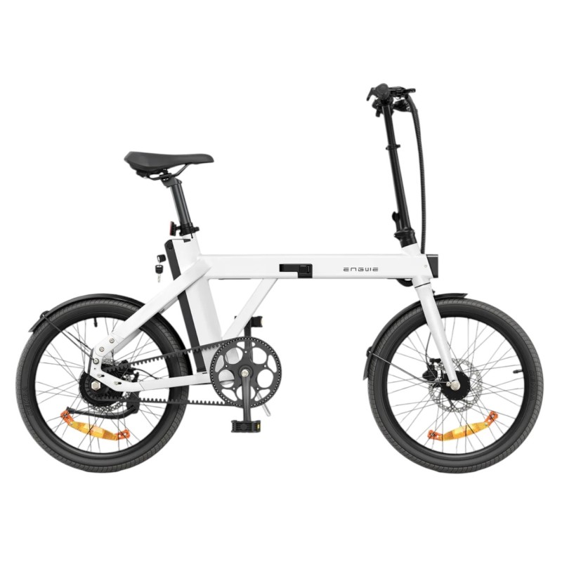 ENGWE P20 Blanc — Mini vélo électrique ultra compact, pliable & léger : seulement 18,5 kg, capteur de couple et courroie carbone pour une assistance fluide et zéro entretien.