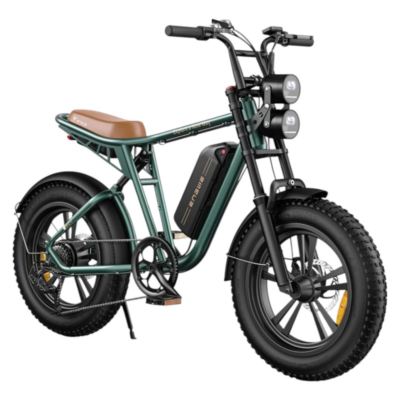 ENGWE M20 – Fat Bike Elettrica stile Moto: look retrò-moto, doppio faro LED, doppia sospensione (forcella + ammortizzatore posteriore) per il comfort in città e su percorsi fuoristrada.