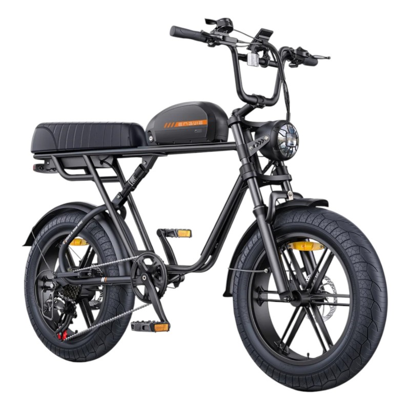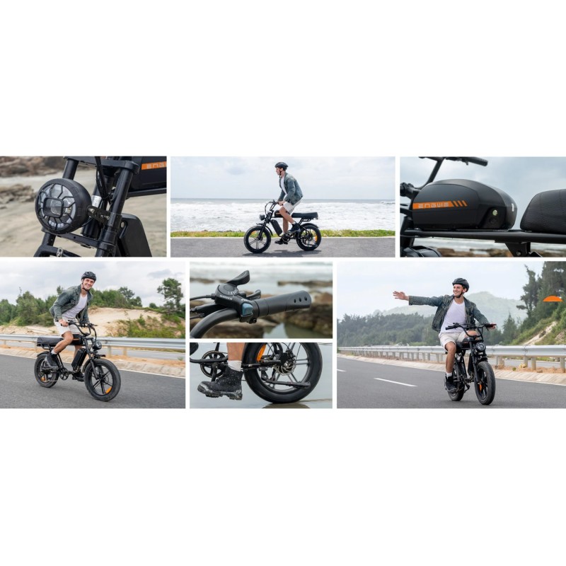ENGWE M1 Nero – Fat bike elettrica stile moto (biposto): look retrò, doppia sospensione, pneumatici 20×4.0 e freni idraulici da 160 mm per un controllo sicuro in città e su sentieri.